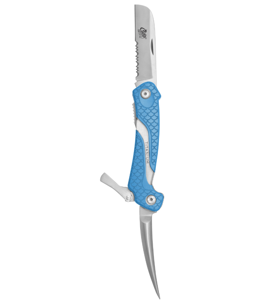 - Construcció d'aliatge d'alumini d'alt adherència, talladors de compost Mono & Braid d'alt palanquejament, manetes antilliscants, patrons d'escala Cuda, també INCLOU funda de niló d'emmagatzematge balístic i cordó convenient.