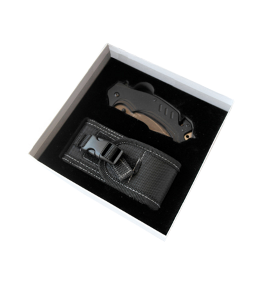 - Inclou: cúter cinturó de seguretat, punta rompevidrio, funda niló d'alta qualitat, caixa de presentació.