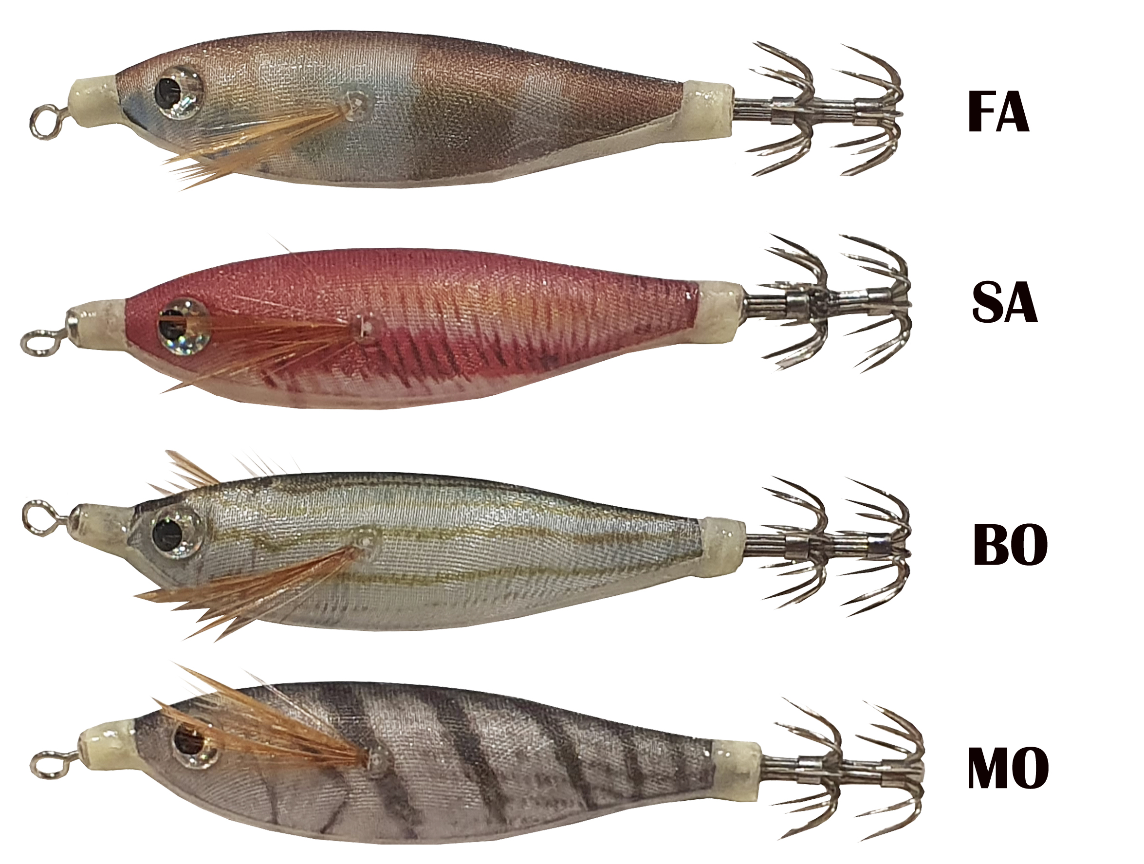 - Doble corona molt afilada, i grans ulls fan un clàssic en la pesca del calamar.