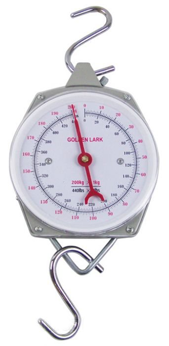 - Báscula de metal resistente a los golpes con dos ganchos de acero inoxidable.
