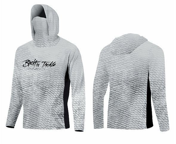 - La camiseta BlackFin Tackle Expedition viene dotada de protector de cuello con ventilación para evitar que se nos empañen nuestras gafas de sol y capucha para darnos ese plus de protección en nuestra cabeza, así podremos elegir si protegernos con gorra o con la capucha de nuestra camiseta BlackFin Tackle Expedition, el lateral está dotado de regilla de ventilación para aportarnos transpiración al mismo tiempo que frecura, para esos días de calor intenso.