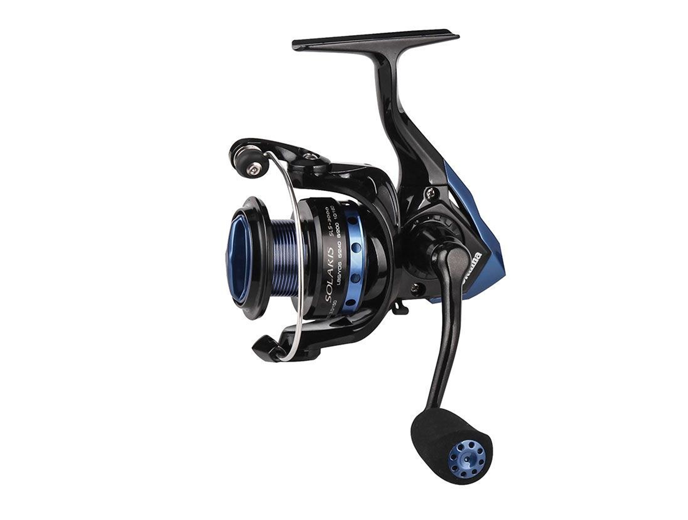 - El carrete de spinning Okuma Solaris está equipado con cuerpo de grafito resistente a la corrosión y mango de metal