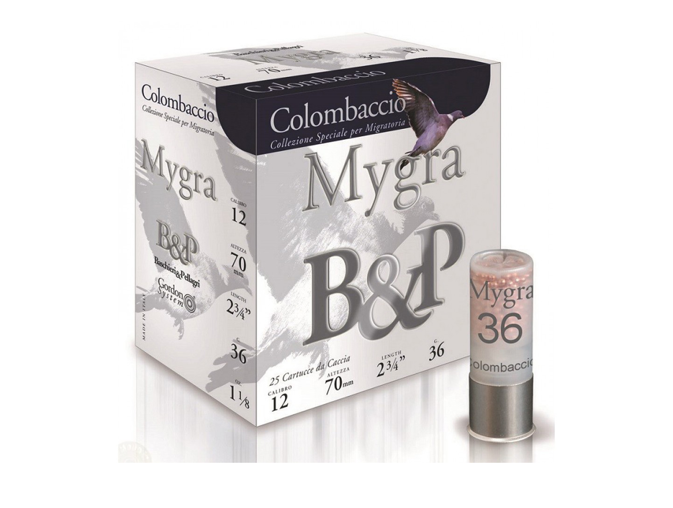 CARTUCHO BASCHIERI&PELLAGRI MYGRA COLOMBACCIO CAL. 12/70 36GRS