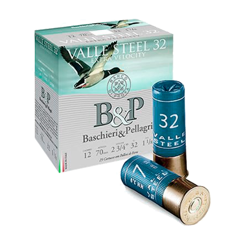 CARTUCHO BASCHIERI & PELLAGRI VALLE STEEL CAL. 12/70 32GRS