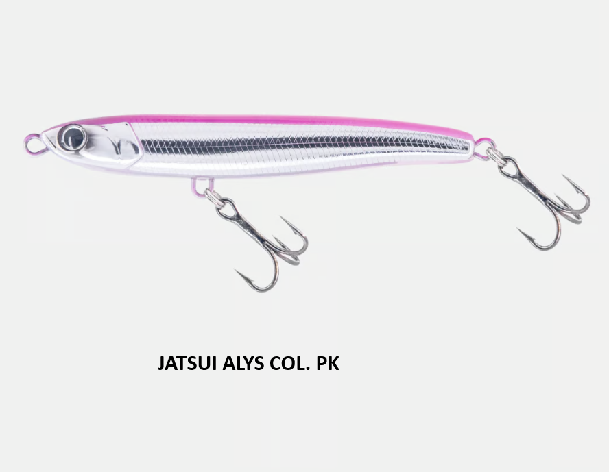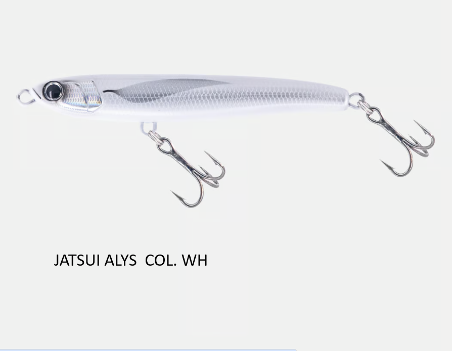 JATSUI Alys es el nuevo stick-bait con un perfil fuertemente hidrodinámico, un cebo de lances largos y movimientos rápidos y bruscos. Desarrollado a semejanza del pez azul símbolo de la alimentación del atún en el Mediterráneo, el alyx. Varias posibilidades de recuperación, de jerk a lenta, recuperación lineal a parada que acentúa su fuerte bamboleo en la caída. Fabricado con tejido pasante y anzuelos VMC para afrontar cualquier tipo de combate en su mejor momento