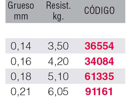 - Monofilamento mixto de última generación que nos ofrece unas características técnicas únicas: la máxima transparencia y una altísima resistencia al nudo y la abrasión.