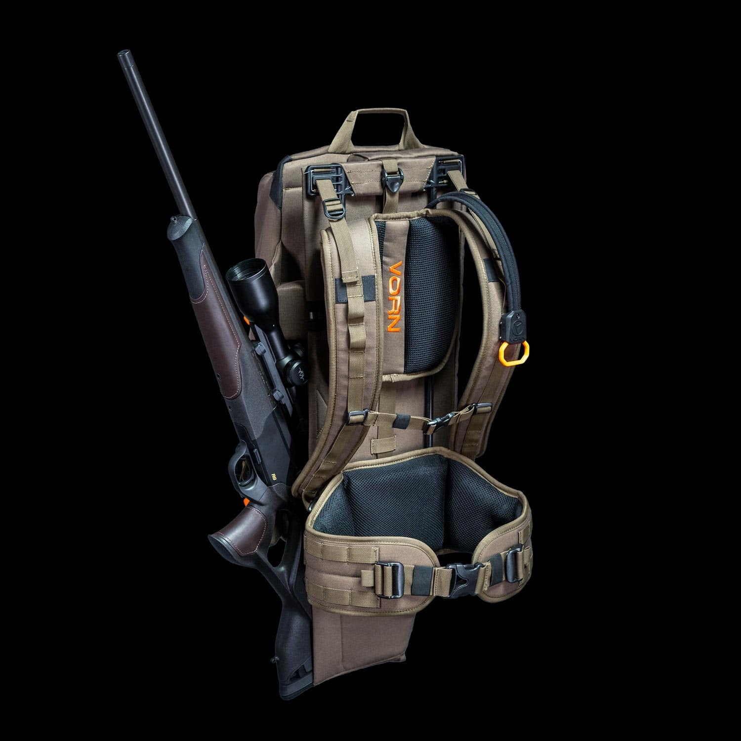 La mochila de caza Vorn EV30 ha sido fabricada con materiales de gran calidad y resistencia, pensados para el duro trabajo en alta montaña. Tejidos como el V-Tex, cremalleras YKK, hebillas Duraflex y cintas de nailon hacen que sea una mochila fiable, duradera y preparada para los peores terrenos.