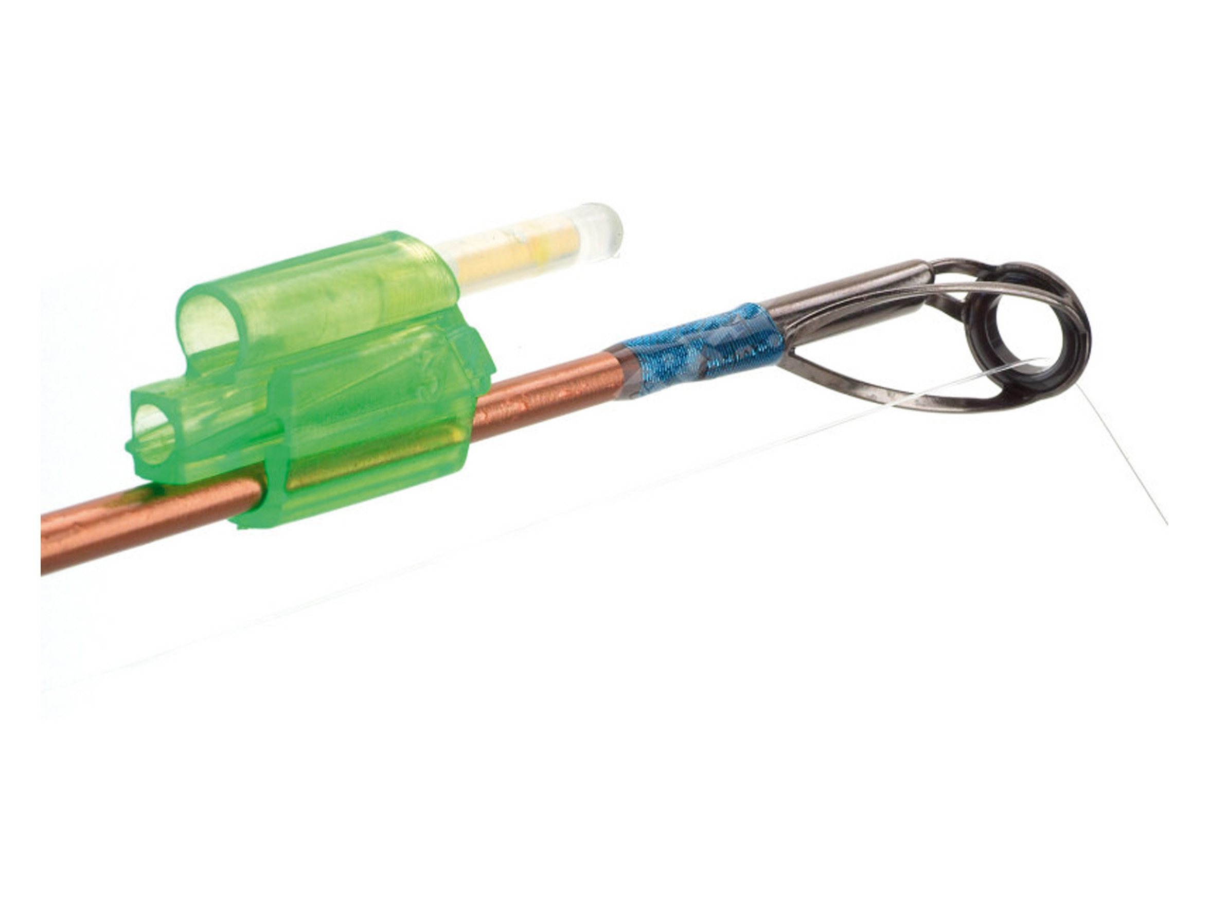- Se coloca en la puntera de la caña de forma rápida y segura.