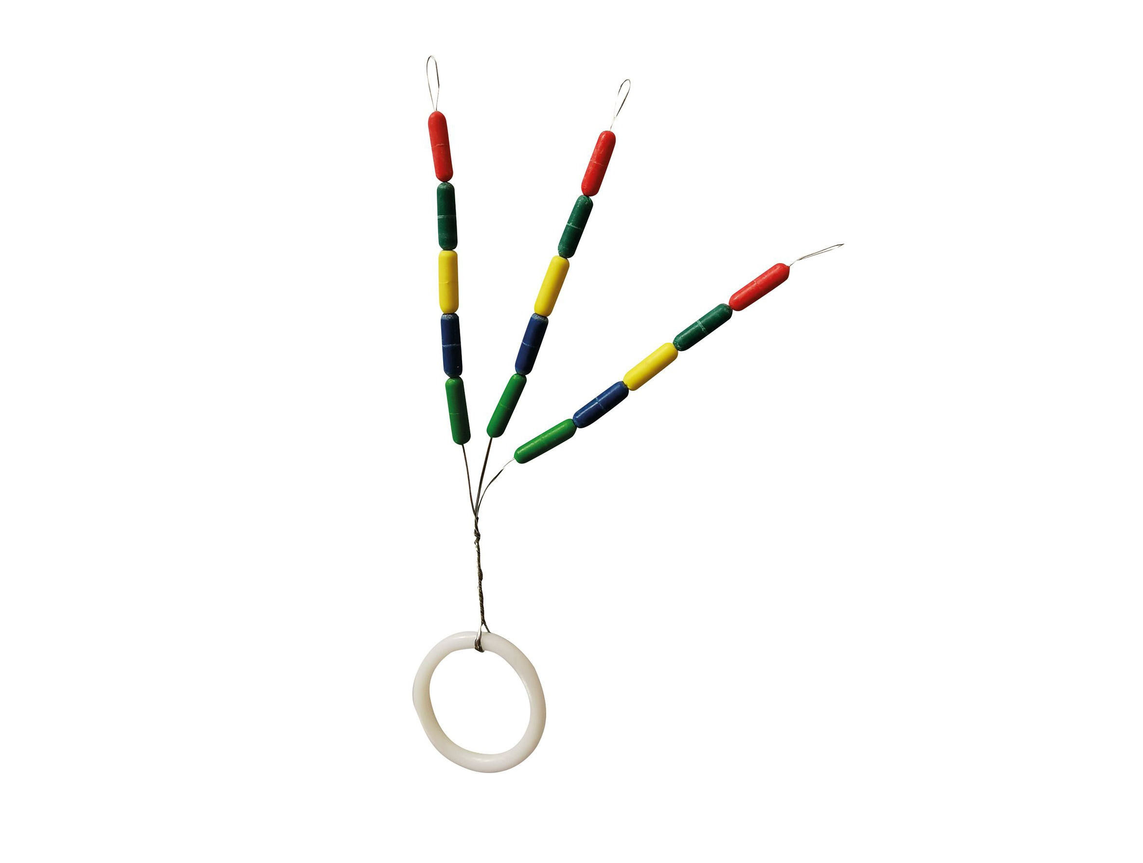 - Stoppers alargados multicolores en ristra para fijación de cametas en bajos de línea