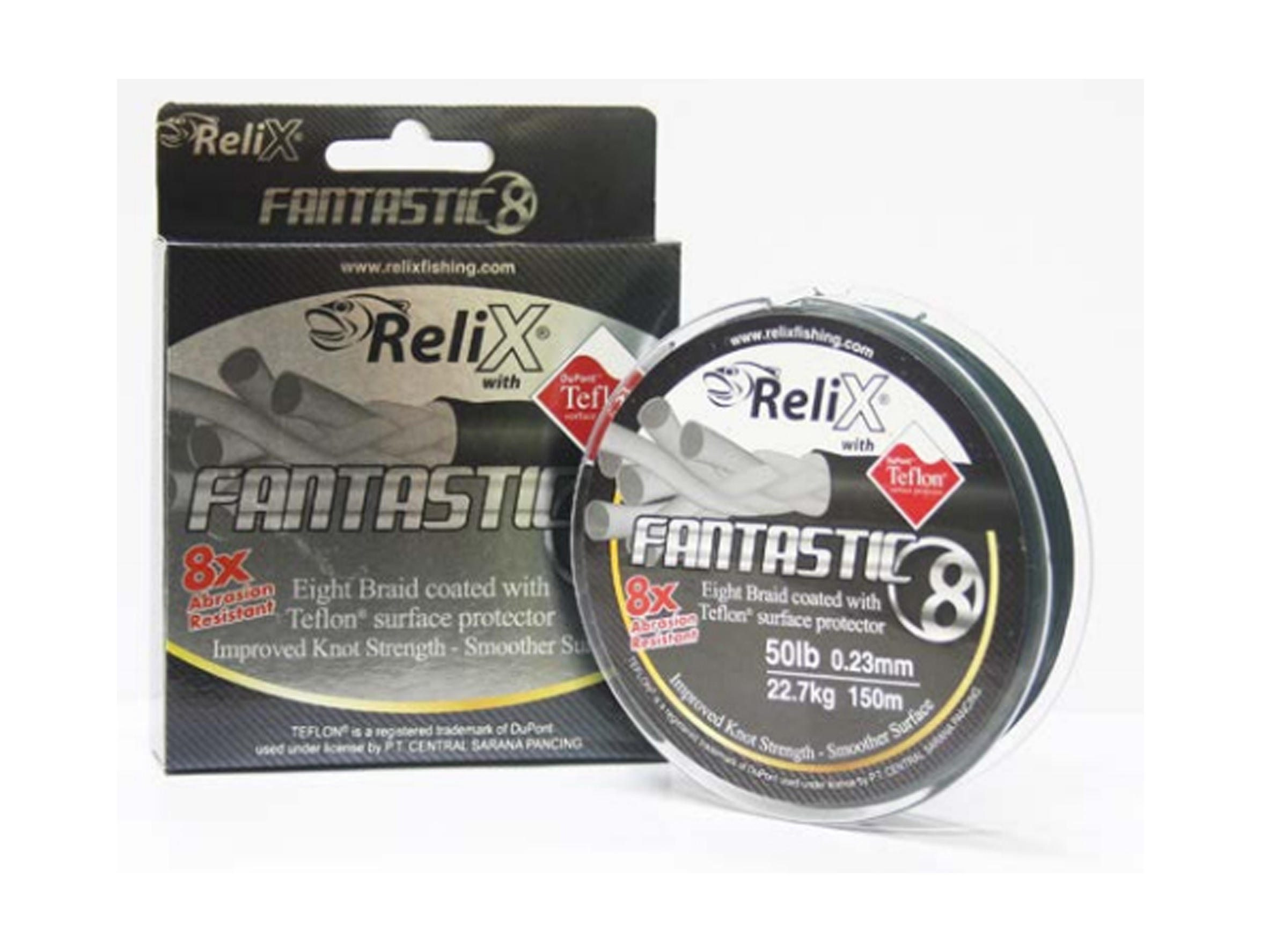 - Hilo trenzado fabricado 100% con 8 fibras PE con recubrimiento de TEFLON.