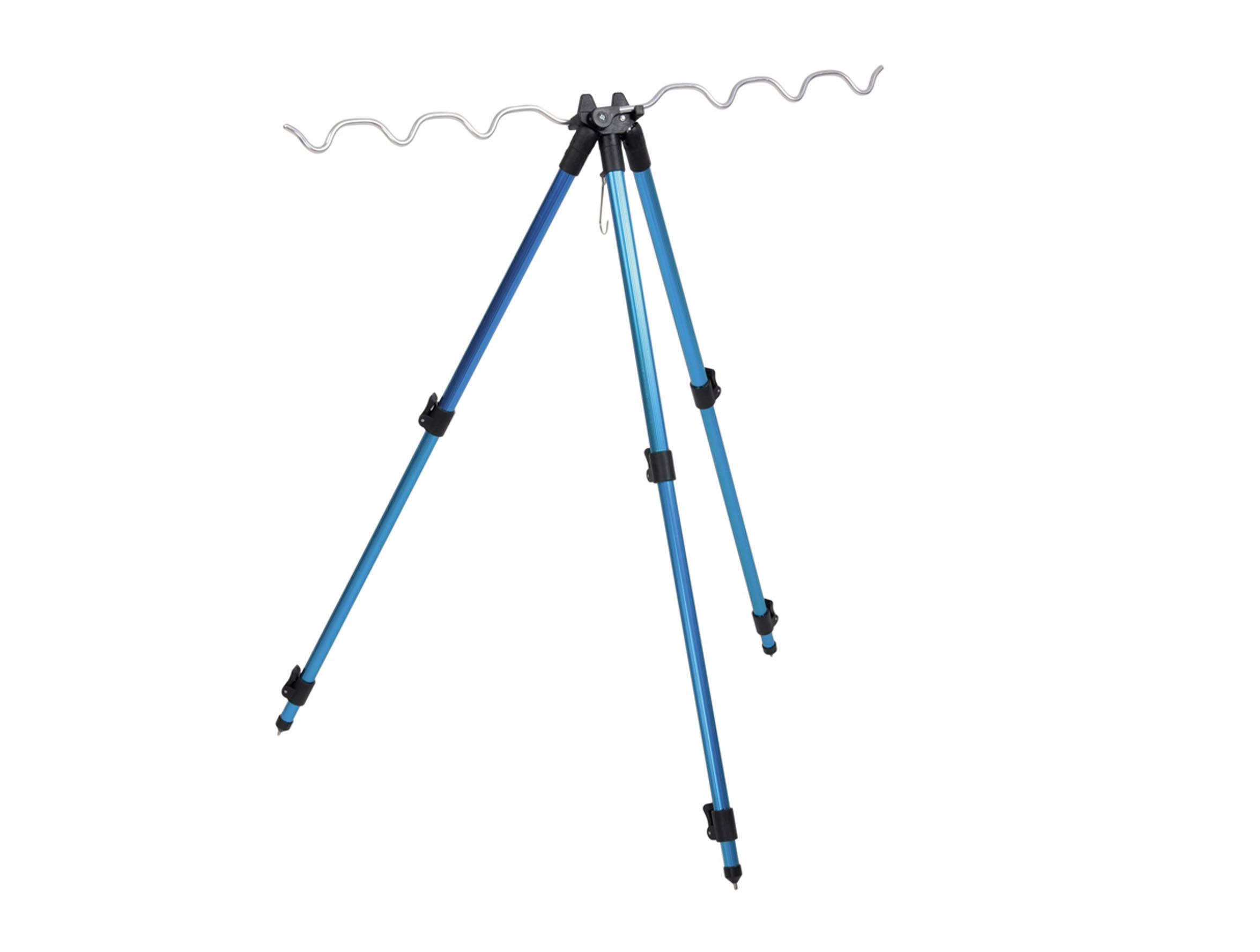 - Soporte telescópico de cañas de tres patas regulables.