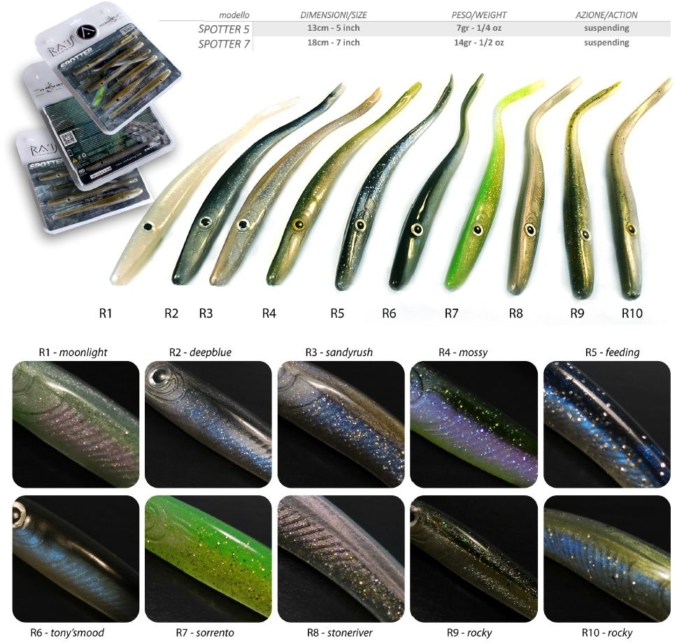 El modelo Spotter de Ra'is destaca por ser un vinilo versátil con el que podrás divertirte y jugar a darle los movimientos y acciones de pesca que quieras.