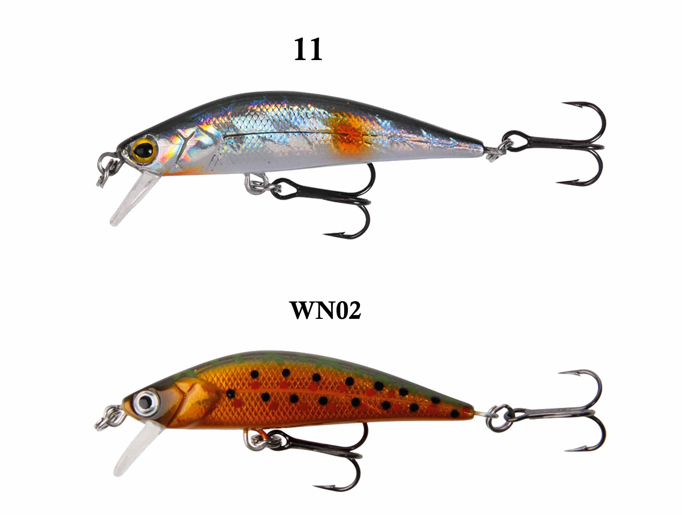 Pequeño minow flotante con una laminación muy sugerente y moderado tambaleo, capaz de sacar de sus escondrijos a las mejores truchas.